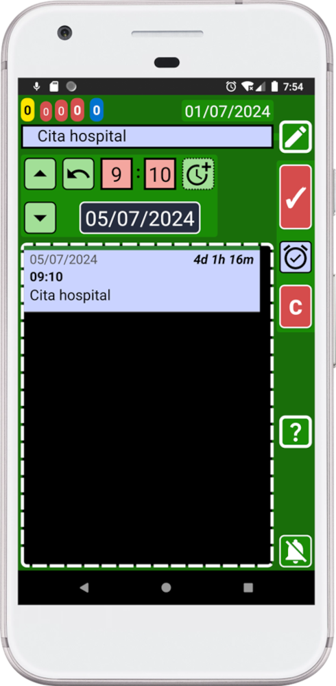 Finalmente, crearemos un tercer recordatorio para la cita en el hospital. Esto nos permitirá ver cuánto tiempo tenemos para la cita en cualquier momento.