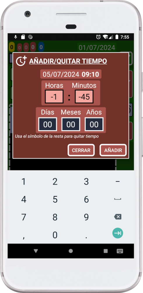 SECURElogBook cuenta con ventanas para sumar o restar tiempo sin errores, por lo que programar tareas es muy fácil. Además, cuenta con un botón para crear copias de registros.