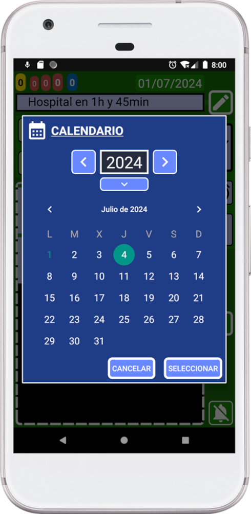8. Para crear otra copia, debemos cambiar la hora. Recuerda que queremos salir 1h y 45min antes de la cita en el hospital. Para cambiar la hora, puedes hacer el cálculo mentalmente o puedes usar la ventana dedicada para calcular la hora manteniendo presionado este botón