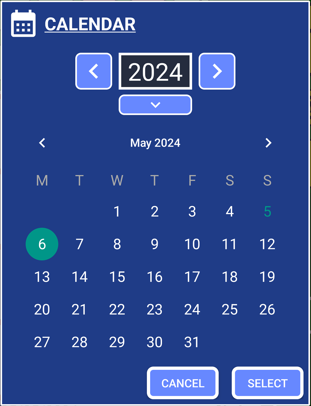 7. Select the date by pressing on the date button (F).