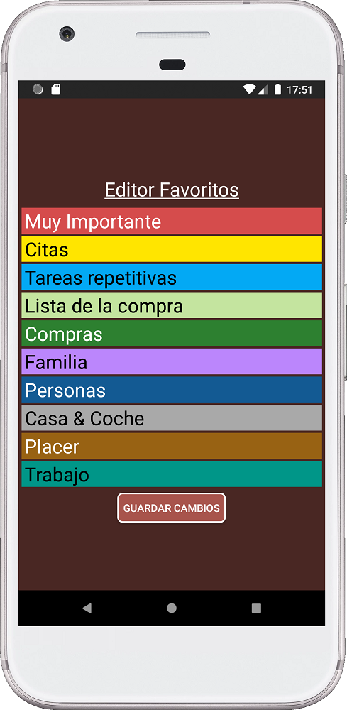 Puedes cambiar el nombre de cada categoría. Además, también puedes cambiar lo que hay dentro de cada lista.