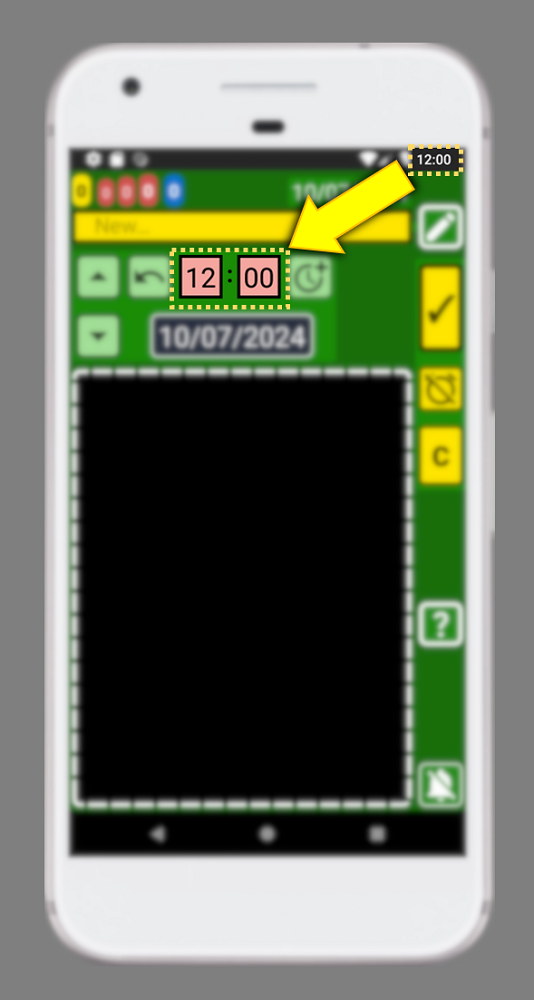 14. By default, the time for a new record (green window) is always set with the current time: