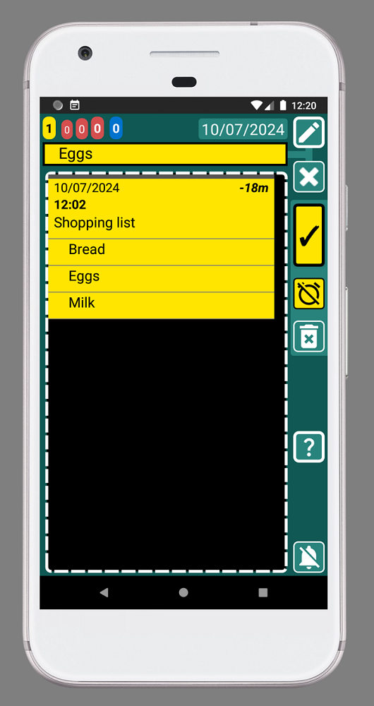 21. Repetitive reminders. Thanks to how SECURElogBook works, reminders and alarms are impossible to ignore because they cannot be accidentally deleted and are highlighted when activated. This means that you do not need to overload your list with records, since to access the next reminder, the previous reminder will always be activated first. At that point you can make a copy or move it with a few taps on the screen.