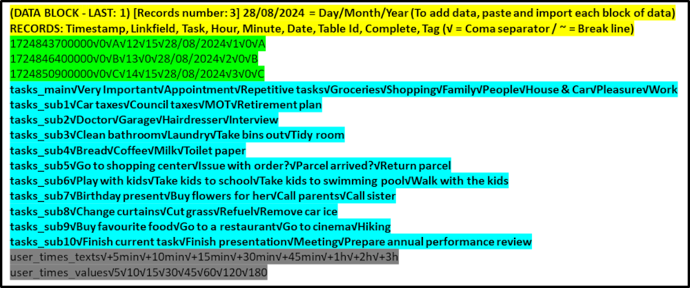 4. The program splits your data in small blocks to allow to copy and paste the information between programs. The more records you have the more blocks of data will be created.