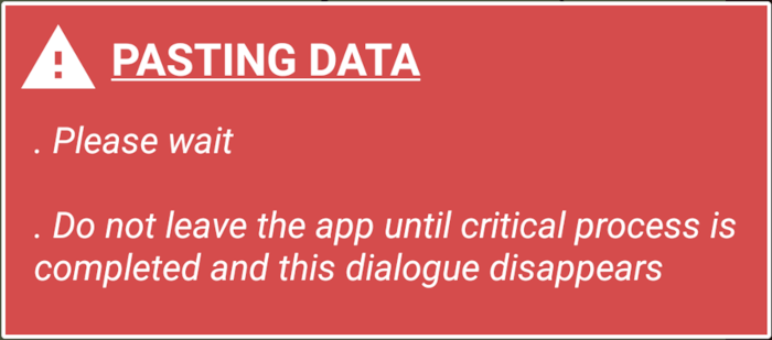 To protect your data, the copied information will be deleted if you leave the Import/Export window.