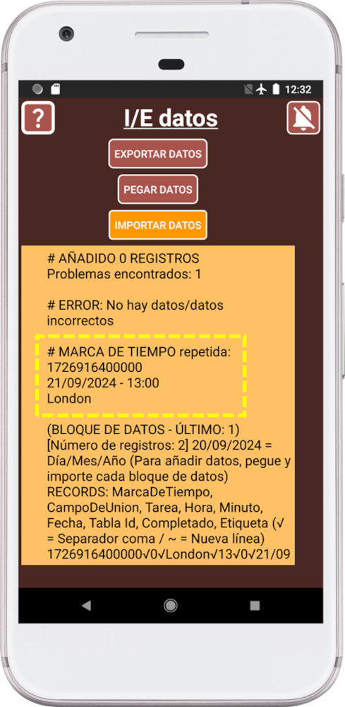 Si importamos un registro de otra persona, si hay un conflicto de tiempo, SECURElogBook te dará información para que sepas dónde está el problema.