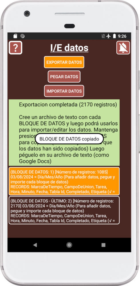 4. El programa divide sus datos en pequeños bloques para permitir copiar y pegar la información entre programas. Cuantos más registros tenga, más bloques de datos se crearán.