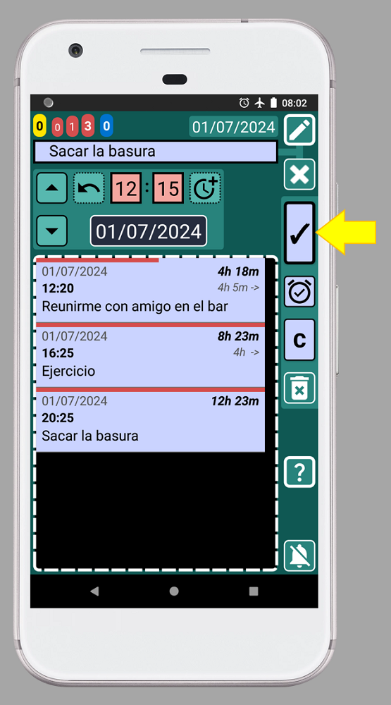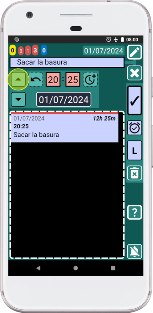2. Como queremos mover el registro "Sacar la basura" hacia arriba, debemos presionar el botón ARRIBA