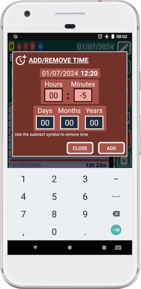 Como podemos ver, hemos movido el registro con precisión completa, rápidamente, sin cálculos mentales ni errores. Ahora el espacio de tiempo entre los registros es de 5 minutos, y podemos verlo gracias a las funciones inteligentes de SECURElogBook.