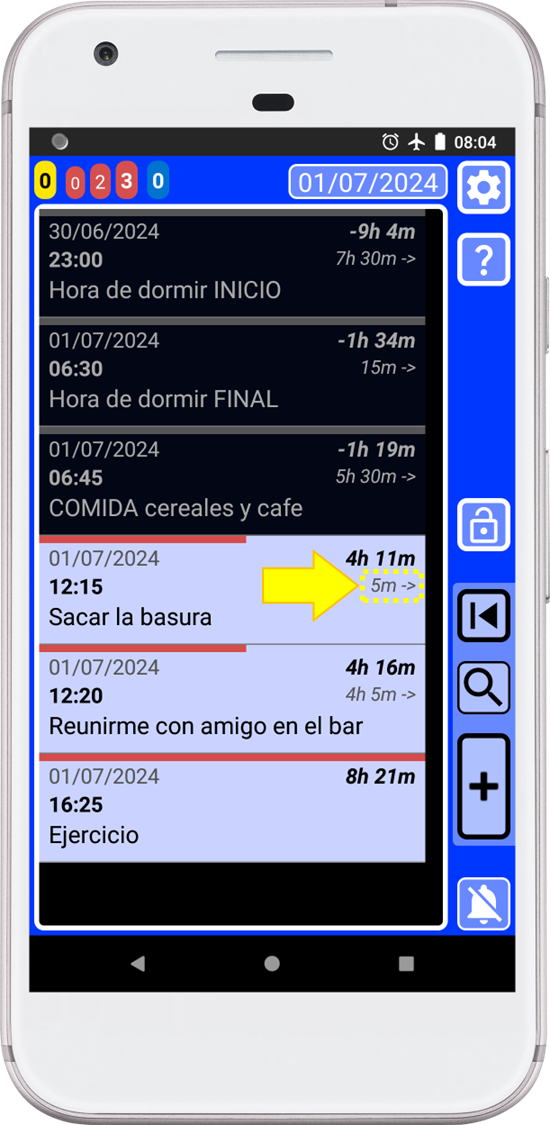 Digamos que quieres mover un registro para que esté a cierta hora antes o después de otro registro. Por ejemplo, quiero mover "Sacar la basura" 5 minutos antes de "Encontrarme con un amigo en el bar".