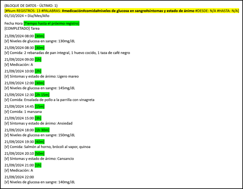 Resaltado en verde, el tiempo hasta el próximo registro. Este valor dará más contexto a los datos, lo que facilitará su comprensión.