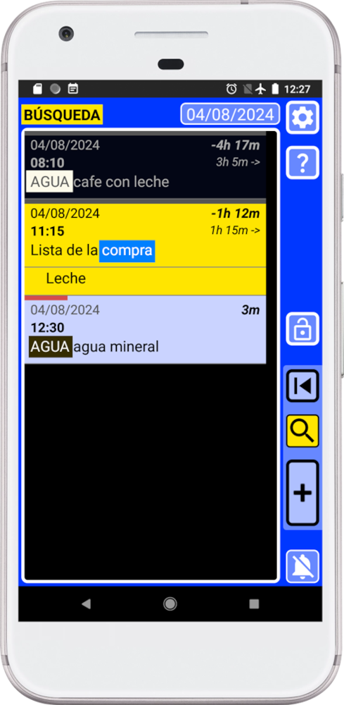 Si etiquetas tu información, buscarla será muy fácil. Por ejemplo, si buscas “AGUA”, SECURElogBook mostrará cada vez que bebiste agua. Podrás hacer lo mismo con “COMIDA”, “DINERO”, …