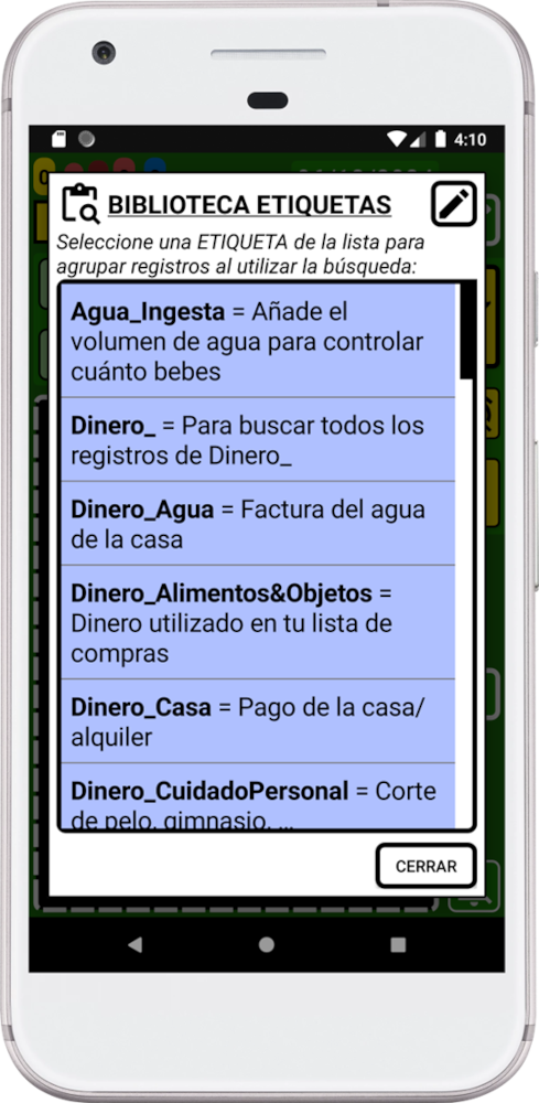 Esta nueva característica permitirá que SECURElogBook no solo haga múltiples cosas como programar tu día usando solamente tu teléfono, seguir lo que comes, cuánto ejercicio haces... Ahora, la aplicación proporcionará un mejor control sobre su información. Diseñé SECURElogBook para manejar toda tu información usando solo tu teléfono (la mayoría de las aplicaciones de teléfono necesitan un programa para PC y acceso a Internet). Ahora, gracias a la Biblioteca de Etiquetas, la aplicación es como un Ferrari para la información en tu mano. Puedes conducir tu Ferrari lentamente o ganar una carrera! Depende de lo que quieras hacer. Cuanto más sepas sobre coches y más practiques, más podrás lograr con él. Lo mismo se aplica para SECURElogBook.