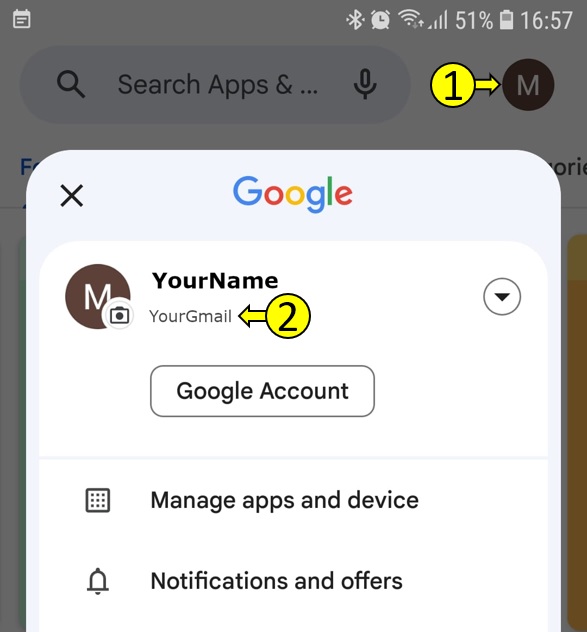 . (2) is the Gmail account that Google Play is using.