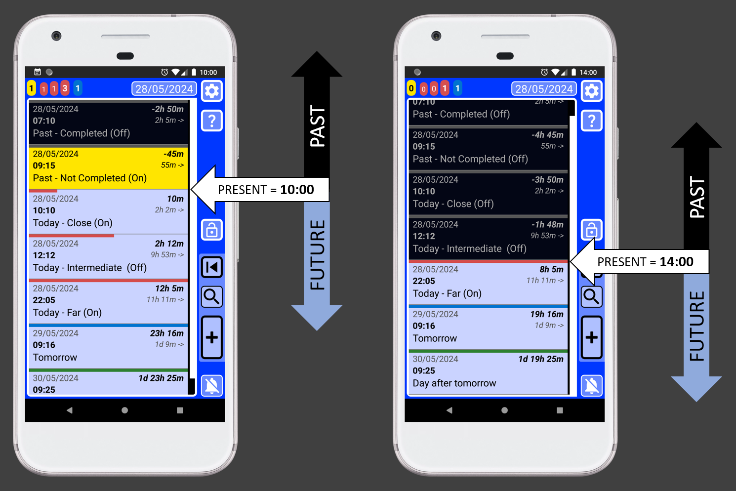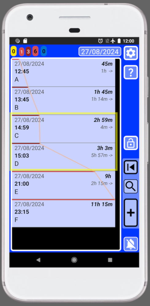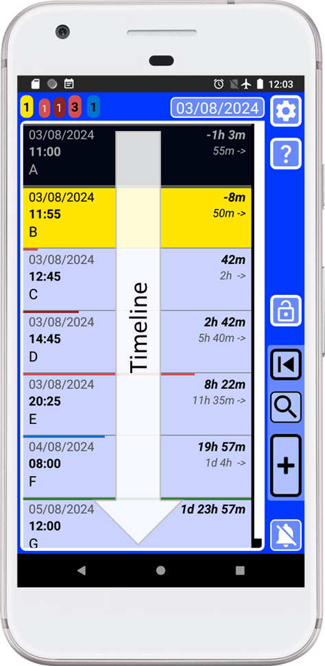 Every record dynamically shows the time gap between the current record and the present, as well as the time difference between that record and the next. Armed with this knowledge, scheduling your day becomes a piece of cake.