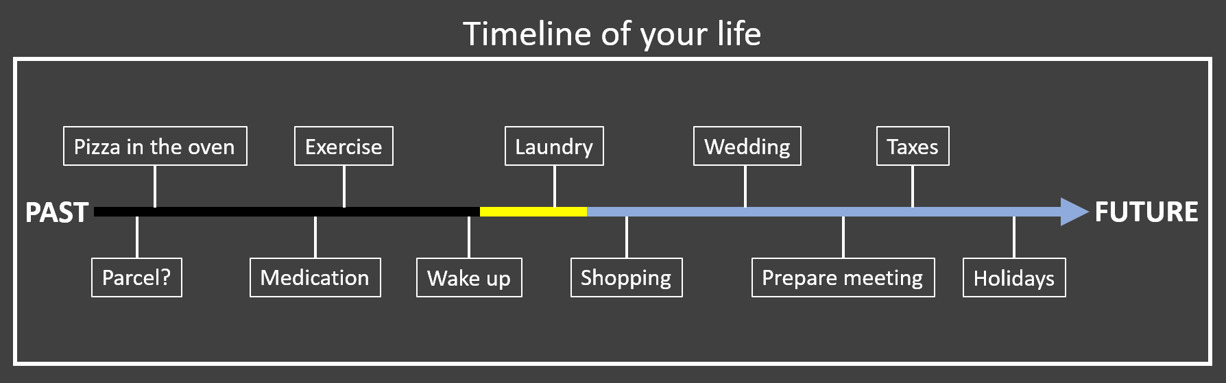 3. Between tasks, there is a transition time that adds up at the end of the day. For example, we might know that a recipe takes 15 minutes to prepare, but we don't finish eating when the recipe is done. We still need to eat it, clean the dishes, brush our teeth. This extra time between activities will delay the rest of the activities making us waste time.